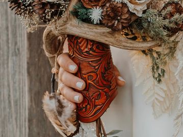 Floral tooled bouquet wrap.