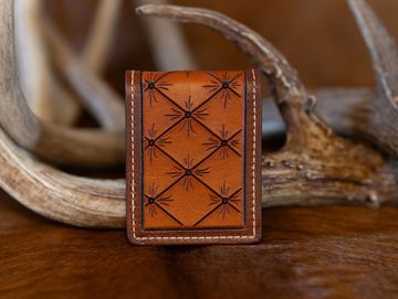 Tooled bifold money clip wallet.