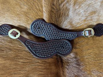 Chocolate Brown Basket Weave spur straps with brass buckles.